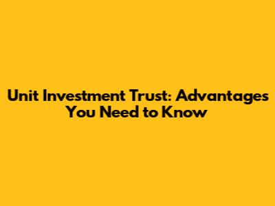 Unit Investment Trust: Advantages You Need To Know